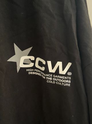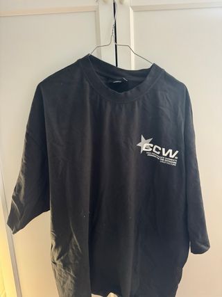 Camiseta negra con estampado de estrella y logo. - Diseño de cuello redondo. - Manga corta. - Estampado frontal con texto 'CCW' y 'COLD CULTURE'. - Sin estrenar, con etiqueta