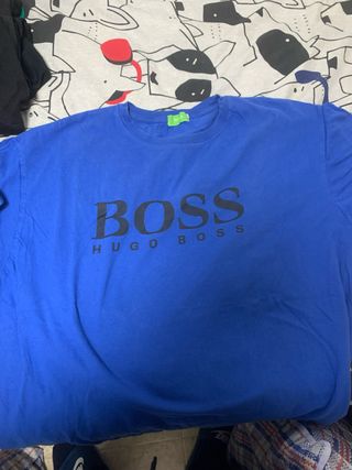 Camiseta de manga corta con cuello en V y un diseño de rayas horizontales. - Logo de BOSS en la parte delantera con detalles brillantes. - Etiqueta de la marca en el cuello. - Si estaís indecisos y queréis mas información o imágenes, escribirme sin compromiso