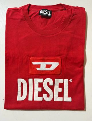 Camiseta de manga corta de la marca Diesel en color rojo. Presenta un diseño llamativo con el logo de la marca. - Logo de Diesel en la parte frontal. - Parche con el símbolo de la marca. - Cuello redondo.