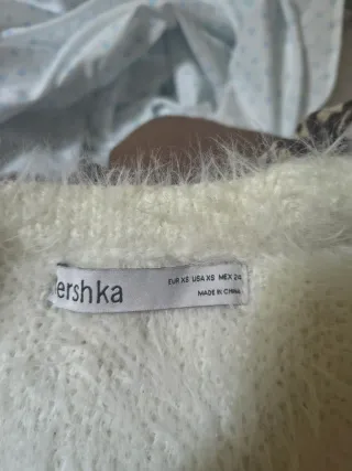 Camiseta de Bershka con un tacto muy suave y peludo. Es de color blanco y talla XS. - Diseño de pelo - Tacto suave