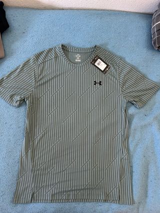 Camiseta de manga corta con un diseño moderno y llamativo. - Estampado lineal en tonos verdes. - Logo de Under Armour en el pecho. - Cuello redondo.