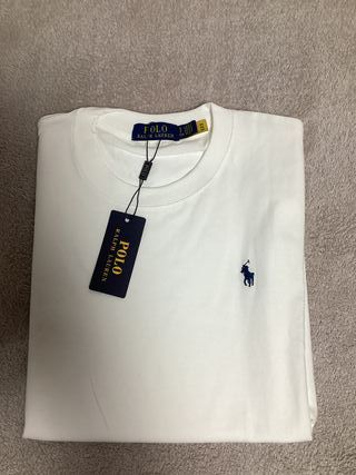 Camiseta básica de manga corta de la marca Polo Ralph Lauren. - Logo del jinete bordado en azul marino en el pecho. - Cuello redondo. - Tejido de algodón suave. - Talla S - Sin ningún desperfecto - Envios de inmediato