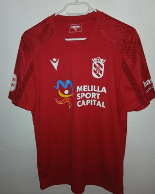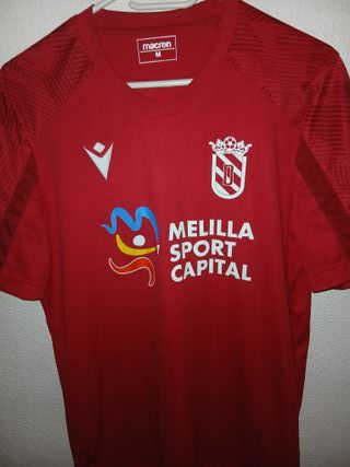 Camiseta oficial de la Unión Deportiva Melilla. - Diseño deportivo en color rojo. - Logo de Macron en blanco. - Escudo del club en el pecho. - Inscripción Melilla Sport Capital en el frontal.