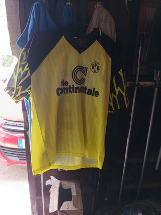 Camiseta de fútbol del Dortmund con el dorsal 9 y el nombre de Chapiusat. - Diseño clásico en amarillo y negro. - Detalles gráficos en las mangas.