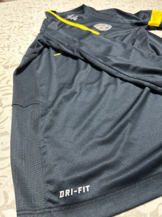 Camiseta de manga larga con detalles en amarillo. - Logo de Nike. - Inscripción Qatar Foundation. - Logo de Audi. - Logo de Powerade.