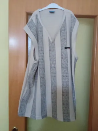 Jersey de punto beige con camiseta blanca de algodón, nuevo sin estrenar
