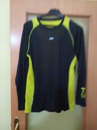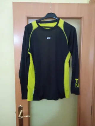 Camiseta deportiva con diseño moderno y llamativo. - Mangas largas. - Paneles laterales en contraste de color. - Cuello redondo.