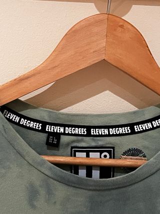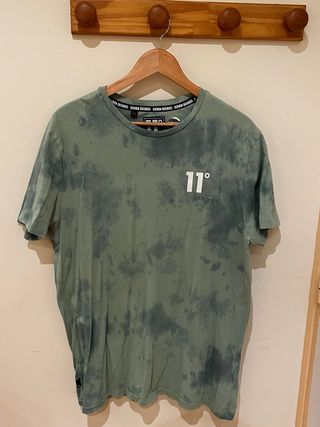 Camiseta de manga corta con un diseño tie-dye en tonos verdes y grises oscuros. - Estampado tie-dye. - Logo de Eleven Degrees en blanco en el pecho.