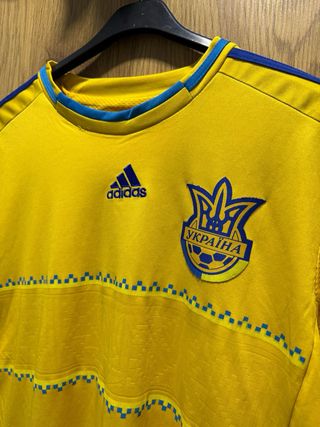 Camiseta de fútbol de Ucrania de la Eurocopa 2012. - Diseño oficial de Adidas. - Colores: amarillo y azul. - Detalles de diseño en el pecho.