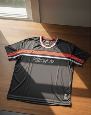 Camiseta deportiva Nike Air con un diseño moderno y llamativo. - Tejido transpirable. - Detalles en rojo y blanco. - Cuello redondo.