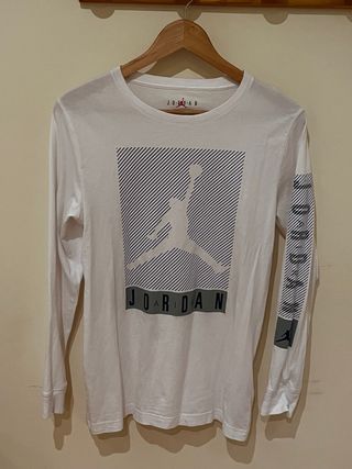 Camiseta de manga larga de la marca Jordan. - Diseño frontal con el logo Jumpman. - Estampado gráfico en las mangas. - Cuello redondo.