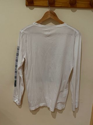 Camiseta de manga larga con estampado gráfico,en buen estado. - Estampado frontal con imagen y texto. - Cuello redondo. Talla L Medidas en las fotos 65% Algodón 35% Poliéster