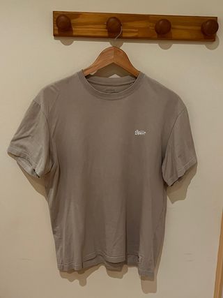 Camiseta de corte oversize en color beige. - Cuello redondo. - Manga corta. - Logo bordado en el pecho.