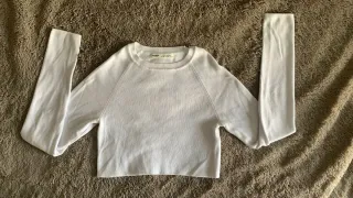 Camiseta de manga larga en color blanco, con un diseño suave y moderno. - Corte cropped. - Tejido de canalé. - Cuello redondo.