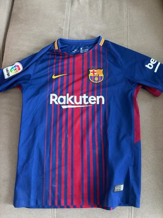 Camiseta oficial del FC Barcelona para niño, con el diseño característico de rayas verticales rojas y azules. - Escudo del FC Barcelona bordado. - Logo de Nike. - Parche de LaLiga. - Sponsor Rakuten. 10-12 años