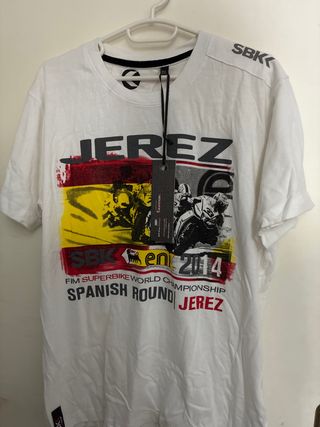 Camiseta de manga corta con diseño inspirado en el SBK Spanish Round de Jerez en 2014. - Estampado frontal con la bandera de España y pilotos. - Logo de SBK en la manga y cuello.