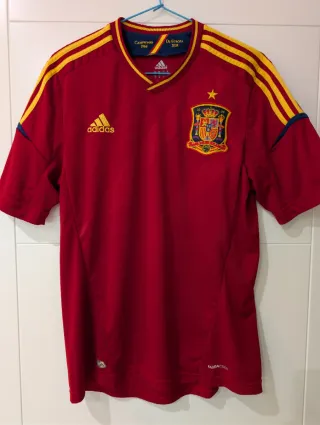 Camiseta oficial de la Selección Española de fútbol, modelo de la temporada 2012. - Diseño con detalles en amarillo y azul. - Escudo de España bordado en el pecho. - Logo de Adidas en relieve. - Tecnología ClimaCool para mayor transpiración.