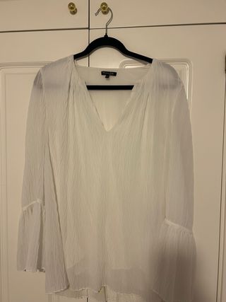Camisa blanca de Massimo Dutti con un estilo boho chic. - Diseño con escote en V. - Mangas largas acampanadas. - Tejido ligero con textura.