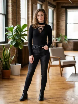 Camiseta negra sin mangas con cuello alto. - Diseño moderno y versátil. - Tejido cómodo y suave al tacto.