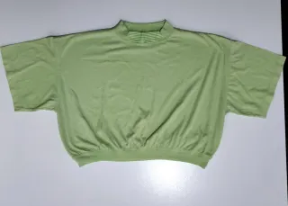 Camiseta cortita de manga corta - Diseño moderno y juvenil. - Tejido suave y cómodo. - Detalle de franjas en el cuello. Es ancha y se adapta bien a una talla XS / S / M