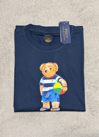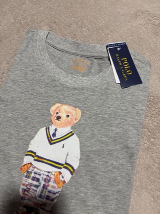 Camiseta original de Polo Ralph Lauren para niño con un divertido diseño. - Mangas de color azul marino y rojo. - Estampado de Polo Bear con detalles. - Cuello redondo.