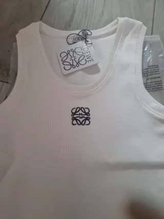 Camiseta sin mangas de la marca Loewe. - Color blanco. - Logo de la marca bordado en el pecho.