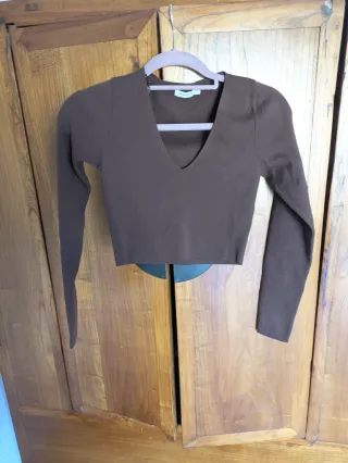 Camiseta marrón escote pico talla S