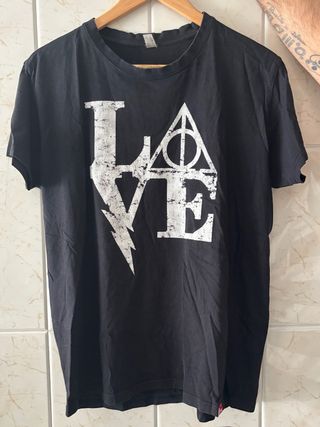 Lote camisetas con diseños de Harry Potter. - Diseño LOVE con símbolos de Harry Potter. - Marca mortífagos, brilla en la oscuridad. Posibilidad de adquirirlas por separado. En perfecto estado.