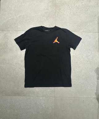 Camiseta negra con el icónico logo Jumpman de Jordan. - Diseño gráfico del logo Jumpman en la espalda. - Logo con efecto degradado en tonos naranjas y rosas.