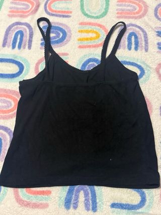 Este top negro estilo coquette y2k es una prenda versátil. Muy fresca para verano - Diseño con botones frontales. - Tirantes finos. - Ribete festoneado en el escote.