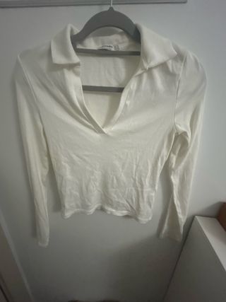 Camiseta de manga larga con cuello polo. - Diseño de canalé. - Cuello con solapa. - Abertura en pico.