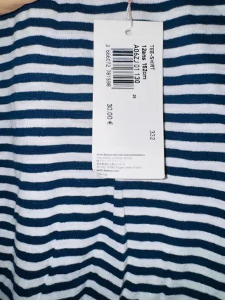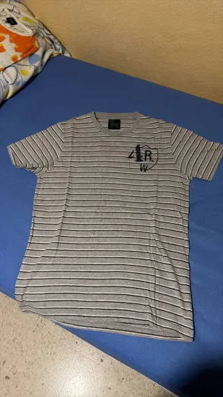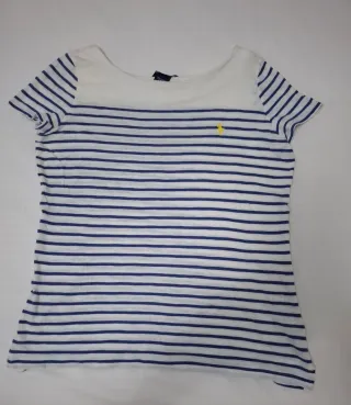Camiseta de manga corta con un diseño de rayas clásico. La talla es para 16 años. - Cuello redondo. - Pequeño logo bordado en amarillo en el pecho. - Tejido suave y cómodo.