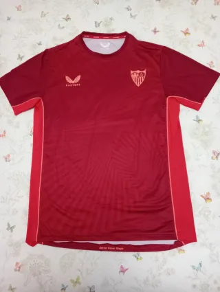 Camiseta de fútbol original castores talla M del Sevilla FC - Medidas: 77x52 - Diseño deportivo. - Escudo del equipo en el pecho. - Logo de la marca. - Detalle de texto Better Never Stops en el dobladillo.