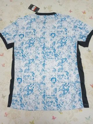 Camiseta de fútbol de talla XL nueva con etiqueta - Medidas: 75x55 - Diseño con estampado gráfico. - Escudo del equipo bordado. - Mangas cortas con ribete negro. - Cuello redondo con ribete negro.