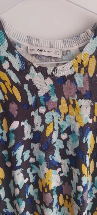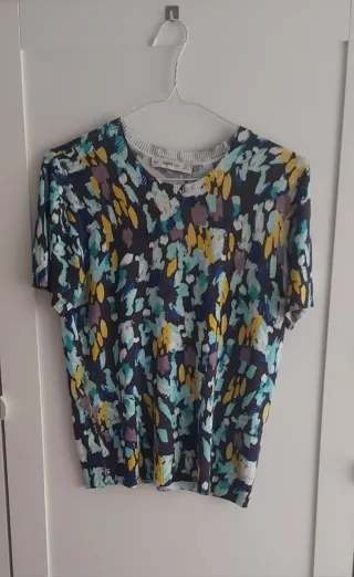 Camiseta de punto con estampado abstracto en tonos vivos.Manga corta, cuello redondo.