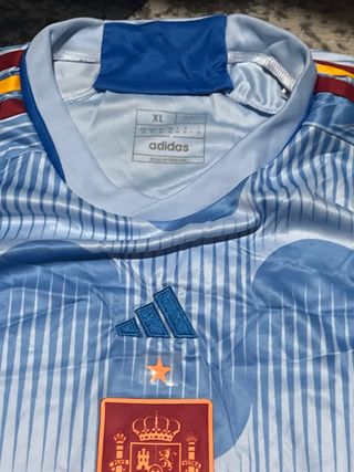 Camiseta de la selección española de fútbol. - Diseño con franjas verticales. - Escudo de la RFEF. - Logo de Adidas.