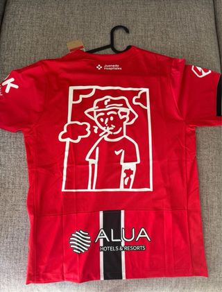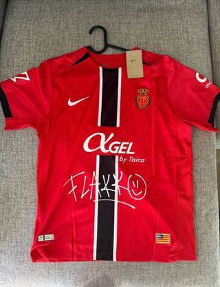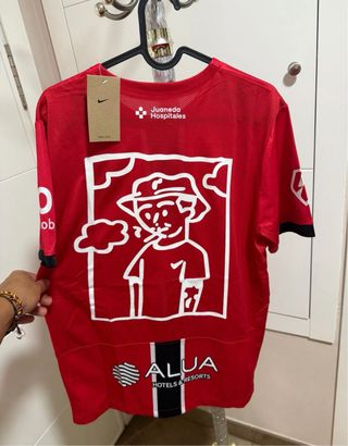 Camiseta de edición especial de Rels B con el escudo del Mallorca. TENGO M Y L - Diseño exclusivo. - Logo de Nike. - Colores rojo y negro.