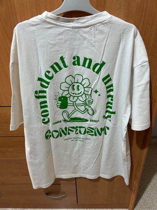 Camiseta SHEIN Blanca con Dibujo Verde Talla M