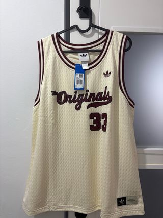 Camiseta sin mangas de Adidas Originals. - Color beige con detalles en burdeos. - Diseño tipo baloncesto. - Número 33 estampado en la parte frontal. - Logo de Adidas Originals en la parte superior.