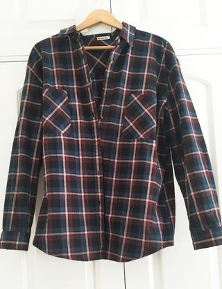 Sobrecamisa con estampado de cuadros. - Diseño de cuadros en tonos azules y rojos. - Cierre de botones. - Dos bolsillos en la parte delantera. - Sobrecamisa de cuadros Double Agent. Sin usar. - Tela muy gordita y buena. - Es oversize aunque dice talla M. Medidas: hombros 50cm; sisa 50cm; 67cm de manga; 75cm de largo. Muchos más artículos en mi perfil, consulte sin compromiso. Descubra las ofertas por lote! #camisa #doubleagent #cuadros