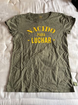 Camiseta de manga corta con estampado. - Estampado Nacido para luchar en amarillo. - Cuello redondo. -Se ve arrugada debido a que ha estado guardada mucho tiempo pero te la planchamos y está perfecta.