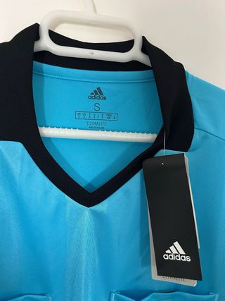 Camiseta de árbitro Adidas REF18 JSY, nueva y con etiquetas. - Diseño con cuello en V y ribete negro. - Dos bolsillos en el pecho con solapa. - Tejido ligero y transpirable. La camiseta está nueva sin estrenar . Máxima calidad. Talla S , color azul celeste y manga corta. Los bolsillos llevan velcros . No desaproveches este chollazo. PVP 60€. Precio negociable, haz una buena oferta y te la llevas .