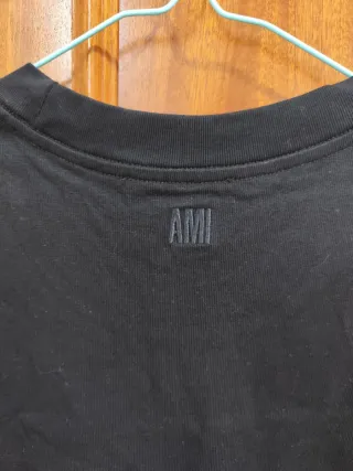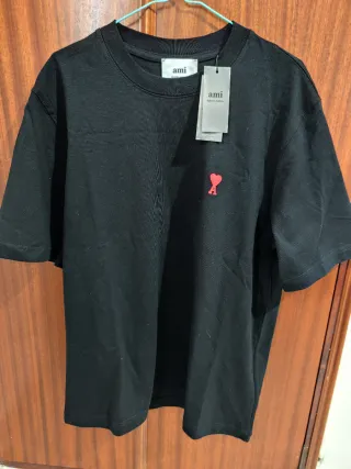 Camiseta de AMI Paris en color negro. Presenta el icónico corazón rojo bordado en el pecho. - Cuello redondo. - Manga corta. - Tejido de algodón.