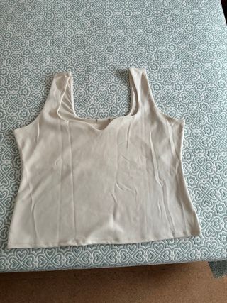 Camiseta de tirante ancho con un diseño en el escote. Es color Blanco roto, talla XXL de H&M, equivale a una 50 - 52