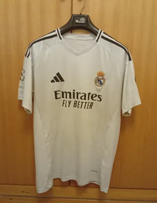 Camiseta oficial del Real Madrid. - Diseño clásico en blanco. - Logo de Adidas en negro. - Escudo del club bordado. - Patrocinador Emirates Fly Better.