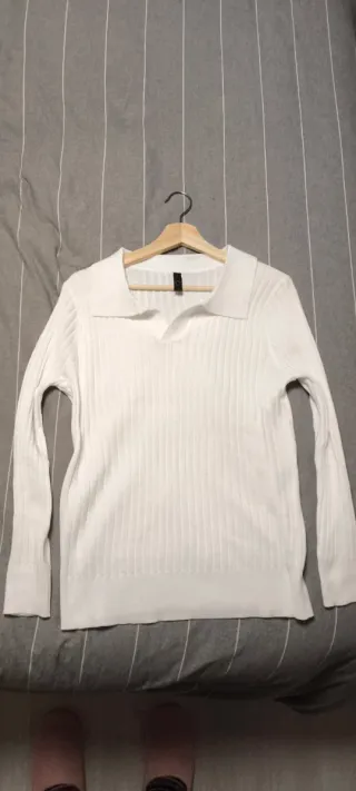 Camiseta de estilo italiano con cuello - Manga larga - Tejido acanalado
