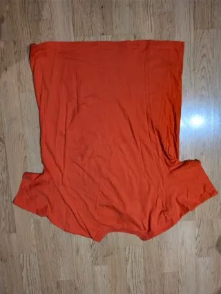 Camiseta básica de manga corta con el logo de Nike. - Color naranja vibrante. - Cuello redondo. - Tejido suave y cómodo. Detalle importante: Presenta un pequeño agujero discreto en el lateral derecho. Se incluye fotografía detallada del mismo para total transparencia.