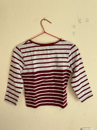 Camiseta de manga tres cuartos con un diseño de rayas. - Diseño de rayas horizontales. - Cuello redondo. *Pone talla L pero es más S/M