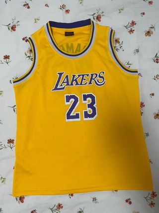 Camiseta de baloncesto de los Lakers, número 23 de LeBron James. - Diseño clásico. - Tejido transpirable. - Talla XL de niño (11-12 años) - Tiene alguna mancha que no sale, por el uso.