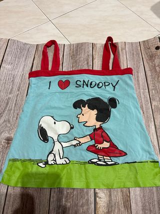 Camiseta con estampado de Snoopy y Lucy de Peanuts. Ideal para fans de la tira cómica. - Diseño frontal con los personajes. - Tirantes rojos. - Cuello y borde inferior en rojo.